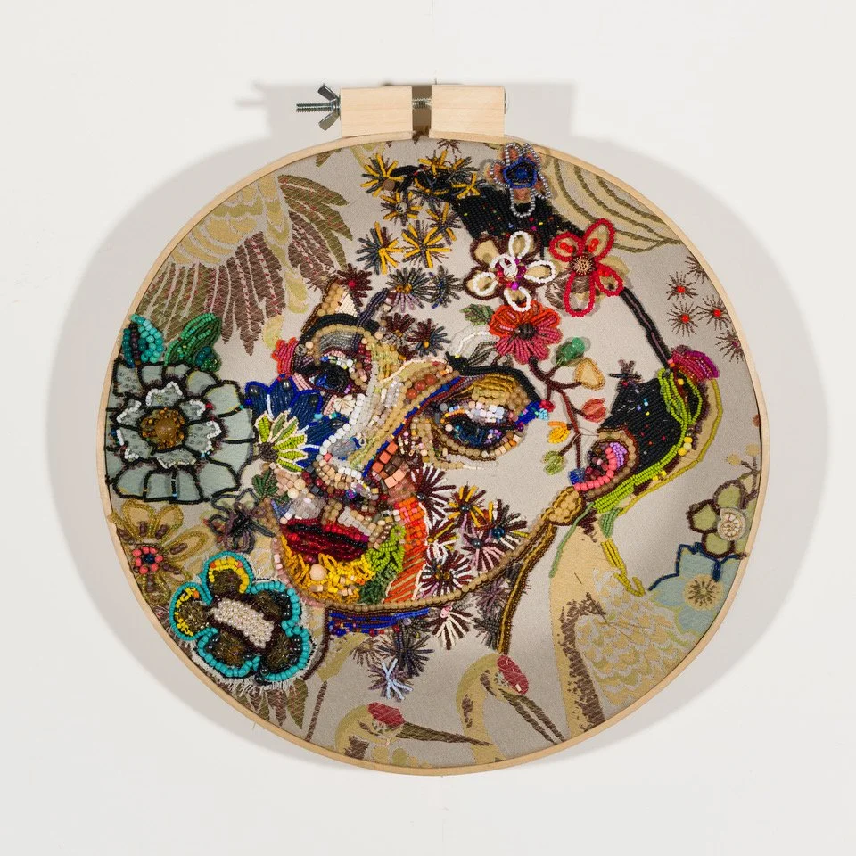 beadwork on tapestry